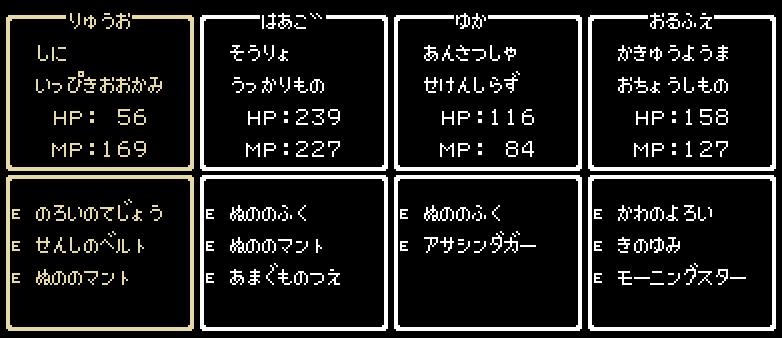私は己の死を覚悟した。ゾーマが帰って来たのだ。奴が己の恐怖を克服し、今までに奴がしてきたどんな仕打ちよりも残忍なやり口で、私を死に追いやる為に。